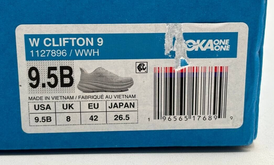 Hoka One One Women's Clifton 9 Triple White Sneakers US 9.5 B