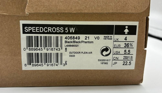 UK Shoe Size: 4Shoe Shaft Style: Low TopStyle Code: 40684921V0US Shoe Size: 5.5EU Shoe Size: 36 2/3Color: Black/Black/PhantomBrand: SalomonType: Does not applyDepartment: Does not applyCustomized: NoModel: Speedcross 5Style: Does not applyShoe Width: StandardCountry/Region of Manufacture: VietnamPerformance/Activity:...Regular price $43.00Quick view -