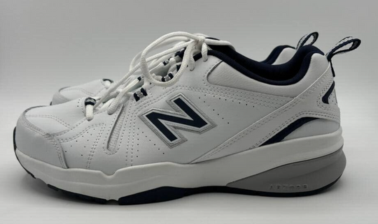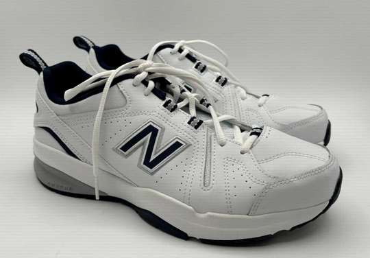 New Balance Men's 608 V5 Casual Comfort Cross Trainer Shoes, White/Navy, US 8 2E