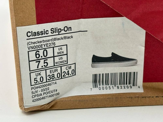 Closure: Slip OnOccasion: Activewear,Casual,WorkwearUS Shoe Size: Men's 6, Women's 7.5Vintage: NoDepartment: Unisex AdultsStyle: Skate ShoesOutsole Material: RubberFeatures: Comfort,CushionedSeason: Fall,Spring,SummerShoe Shaft Style: Low TopPattern: CheckStyle Code: VN000EYE276Signed: NoEU Shoe Size: 38Color: BlackBrand: VANSType: AthleticCustomized: NoModel: VANS ClassicTheme:...Regular price $55.00Quick view -