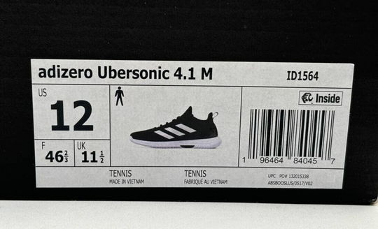 UK Shoe Size: 11.5Shoe Shaft Style: Low TopStyle Code: ID1564US Shoe Size: 12EU Shoe Size: 46Color: BlackBrand: adidasDepartment: MenType: AthleticModel: adidas AdizeroStyle: SneakerShoe Width: StandardPerformance/Activity: TennisProduct Line: adidas Tennisadidas Men's Adizero Ubersonic 4.1 Tennis Shoes, Black/White,...Regular price $59.99Quick view -
