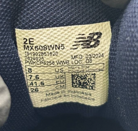 UK Shoe Size: 7.5Shoe Shaft Style: Low TopStyle Code: MX608WN5US Shoe Size: 8EU Shoe Size: 41.5Color: White/NavyBrand: New BalanceDepartment: MenType: AthleticModel: New Balance 608Style: SneakerTheme: Classic,SportsShoe Width: 2EPerformance/Activity: Cross TrainingProduct Line: New Balance 600 Series New...Regular price $45.00Quick view -