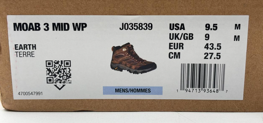 Shoe Shaft Style: AnklePattern: SolidClosure: Lace UpUS Shoe Size: 9.5Occasion: Activewear,CasualEU Shoe Size: 43.5Color: BrownLining Material: FabricMPN: J035839Brand: MerrellDepartment: MenType: BootModel: Moab 3 Mid WPStyle: CombatOutsole Material: RubberFeatures: WaterproofShoe Width: StandardSeason: Fall,Spring,Summer,WinterUpper Material: LeatherInsole Material: FoamCountry/Region...Regular price $63.00Quick view -