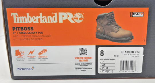 Pattern: SolidToe Shape: Round ToeClosure: Lace UpUS Shoe Size: 8EU Shoe Size: 41Color: BrownMPN: TB133034214Brand: TimberlandDepartment: MenType: BootModel: Pit Boss 6 Inch Steel Safety ToeStyle: CombatOutsole Material: RubberFeatures: Steel Toe,Electrical Hazard ProtectionShoe Width: MUpper Material: LeatherInsole...Regular price $67.00Quick view -