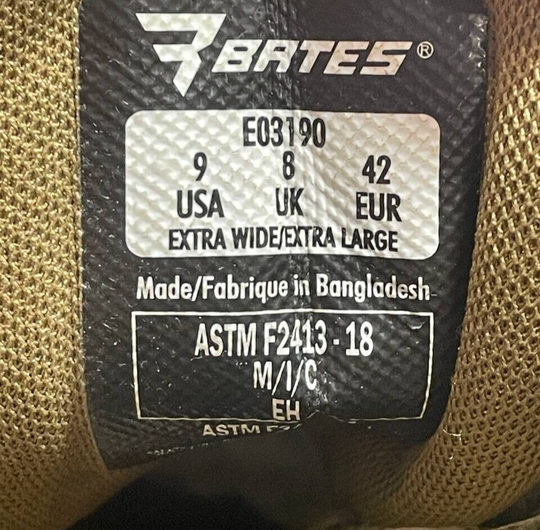 Closure: Lace up/ZipUS Shoe Size: 9EU Shoe Size: 42Color: Coyote BrownMPN: E03190Brand: BatesDepartment: MenType: BootModel: Bates Tactical Sport 2 Tall Zip CTStyle: CombatFeatures: Oil and Slip Resistant,Composite Toe,Electrical Hazard ProtectionShoe Width: EW- Extra WideUpper Material: Leather...Regular price $40.50Quick view -