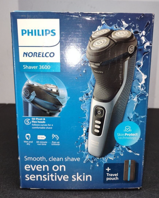 Brand: NorelcoDepartment: MenType: Facial ShaverUnit Type: UnitPower Source: BatteryColor: Storm BlueMotor Type: RotaryModel: Norelco 3600Features: RechargeableMPN: S3243/91Unit Quantity: 1Number of Heads: 1 Philips Norelco Shaver 3600 - Wet/Dry (LA367) Little to no signs of prior use....Regular price $39.99Quick view -