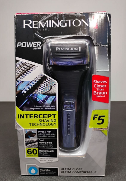 Department: MenPower Source: 100-240V ACMotor Type: PivotBody Area: Face,NeckItem Length: 6 inMPN: F5-5800BHead Type: Foil HeadColor: BlackBrand: RemingtonFeatures: Hair Trimmer Option,Cleaning System,Dual Voltage,CordlessNumber of Heads: 1Type: Facial ShaverModel: F5-5800 Remington F5 Intercptor Rotary Foil Shaver (LA367) ...Regular price $31.99Quick view -