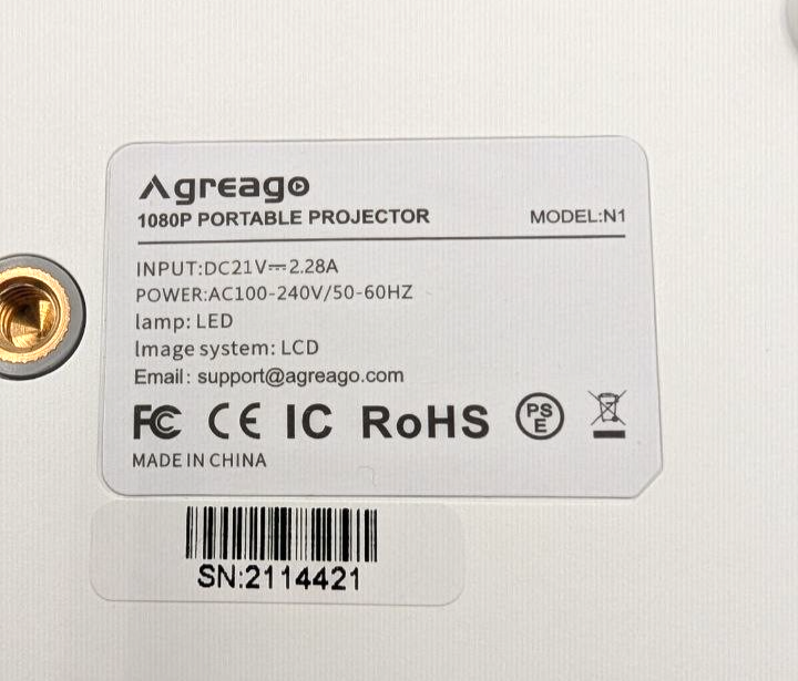 Agreago N1 Outdoor Movie Projector 15000 Lumens, 1080P, Wi-Fi, Bluetooth (AT412)