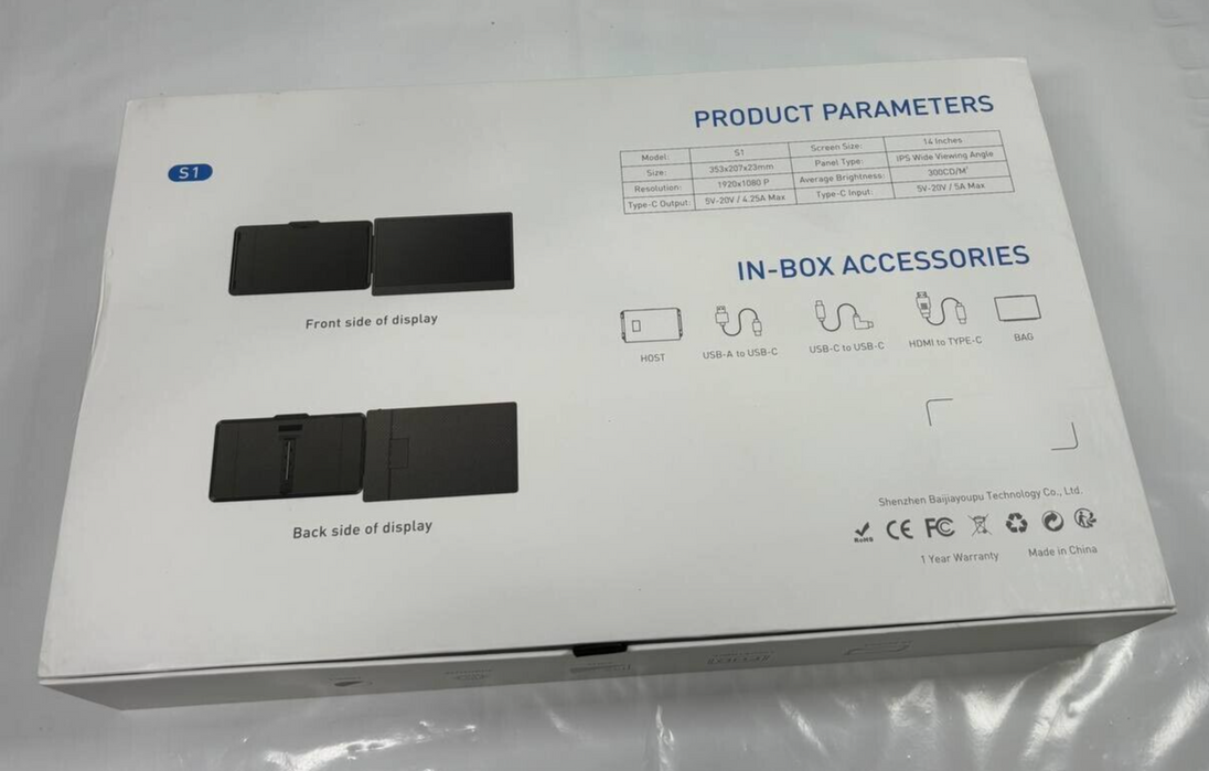 ARZOPA Portable Monitor S1 Table - 15.6" 1080P FHD USB-C HDMI Display - Black