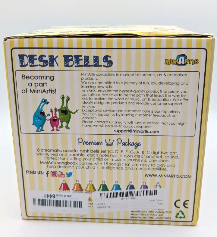 - Featuring a top pat desk bells design that makes playing songs a breeze! These musical bells are an early educational toy for children aged 3 years and up, offering 8 notes c major desk bells (C, D, E, F, G, A, B, C) with clear and rich sounds. The rainbow colors desk bells for kids with diatonic scale position handbells and tones color coding make learning fun and engaging.