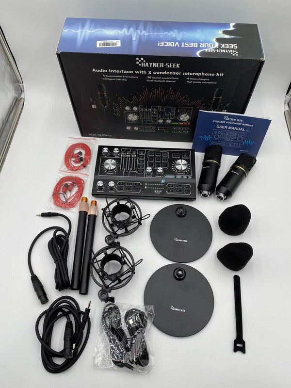 Hayner-Seek Podcast Equipment Bundle MHS117 Audio Mixer 2 Condenser Microphones