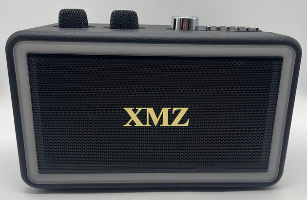 SP500BL Karaoke Machine with 2 Wireless Mics - Wooden Speaker - Brown