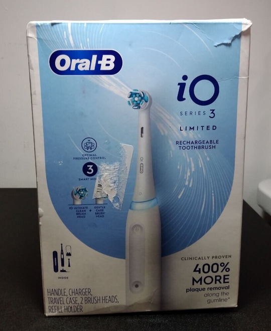 Brand: Oral-BMotion: OscillatingType: Electric ToothbrushPower Source: BatteryColor: WhiteModel: iO series 3Features: Rechargeable,TimerProduct Line: oral b io Oral-B iO Series 3 Limited White Toothbrush (ER893) Item has been used before - Will show signs of usage such as...Regular price $39.99Quick view -