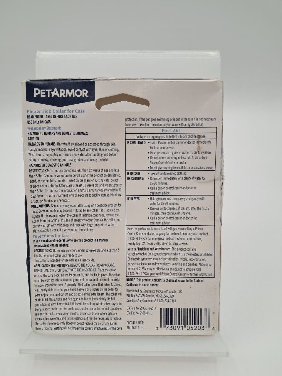 - One PetArmor Flea and Tick Cat Collar kills fleas, ticks, flea eggs & flea larvae for up to seven months