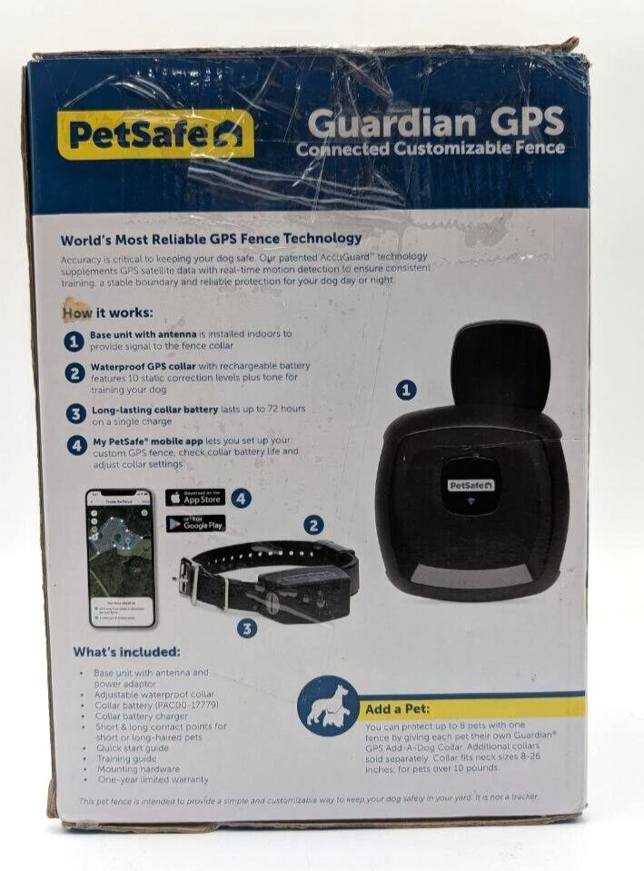 - Package Includes: Base unit with antenna and power adaptor, adjustable waterproof GPS collar, collar battery (PAC00-17779), collar battery charger, short & long contact points for short or long-haired pets.