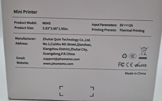 Brand: PhomemoType: Mini PrinterTechnology: ThermalDimensions: 21"D x 5.8"W x 1.9"HFeatures: 300dpi High Resolution,Compatible with Phones,Supports 2/3/4 inch Printing Widths Phomemo M04S 4" Portable Thermal Printer Bluetooth Mobile Printer, Pink (T240) Item is Brand New, and Factory...Regular price $29.00Quick view -