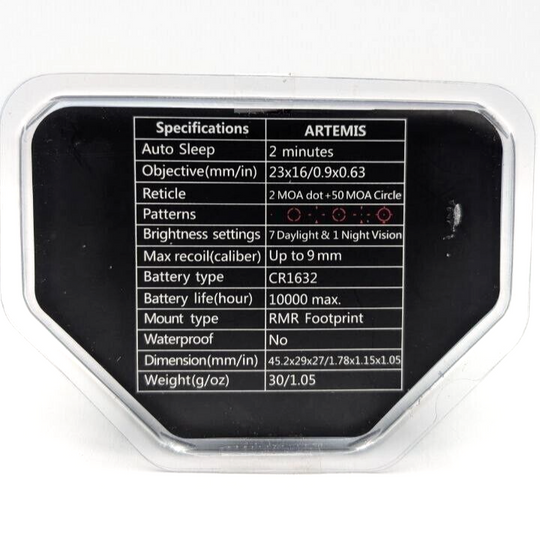 Brand: ADE Advanced OpticsType: Red Dot SightPower Source: BatteryColor: BlackModel: Artemis RD3-022 ProMPN: RD3-022 ProSport/Activity: Airsoft ADE Artemis RD3-022 Pro Motion Sensor Activated Red Dot Sight - GREAT CONDITION (AR213) Item has been used before - Will...Regular price $74.99Quick view