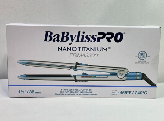 Brand: BaByliss PRODepartment: UnisexType: Flat IronPower Source: ElectricColor: Silver, BlueHeating Plate Material: TitaniumModel: BNT3300TUCHair Type: All Hair TypesFeatures: Adjustable Heat Settings,Dual VoltageMaximum Temperature: 465 °FCountry/Region of Manufacture: ChinaBarrel Size: 1 1/2 in BaBylissPRO Nano Titanium Prima...Regular price $55.00Quick view -