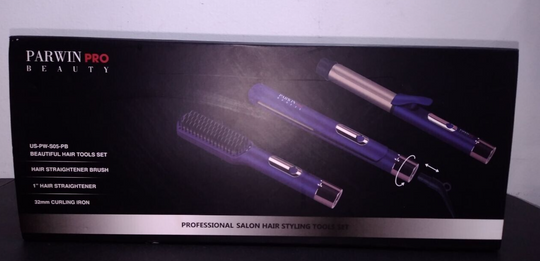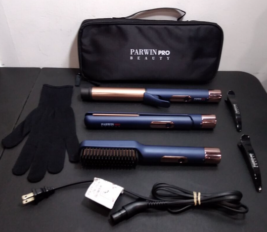 Brand: PARWIN PRO BEAUTYType: Straightener, Curling Iron, Hot CombColor: Prussian BlueMPN: N/AFeatures: Straightener: 1"Barrel Size: Curling Iron: 1.25" Parwin Pro Beauty Professional Salon Hair Styling Tools Set (LA289) Little to no signs of prior use. Minor...Regular price $48.00Quick view -