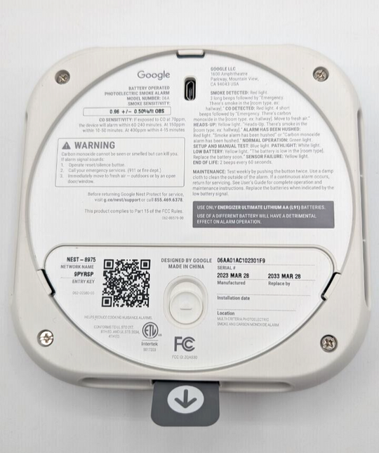 IsListingCreatedFromScratch: FalseBrand: Google NestType: Smoke AlarmSmart Home Compatibility: Nest,Google HomePower Source: BatteryNumber of Batteries: 6Model: S3000BWESColor: WhiteBattery Included: YesSmart Home Protocol: Bluetooth,Wi-FiFeatures: WirelessCountry/Region of Manufacture: ChinaMPN: S3000BWESUPC: 854448003679Year Manufactured: 2024Google Nest Protect - Smoke Alarm -...Regular price $89.99Quick view -
