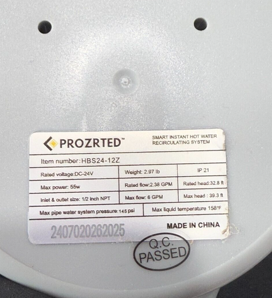 Brand: ProzrtedType: Water PumpInstallation: Universal InstallationVoltage: 24 VModel: Prozrted HBS 24-12Features: Noise Vibration ReductionCountry/Region of Manufacture: China Prozrted HBS 24-12 White Recirculating Thermostat Smart Instant Hot Water Pump (RG668) Item has been used before - Will...Regular price $90.00Quick view -
