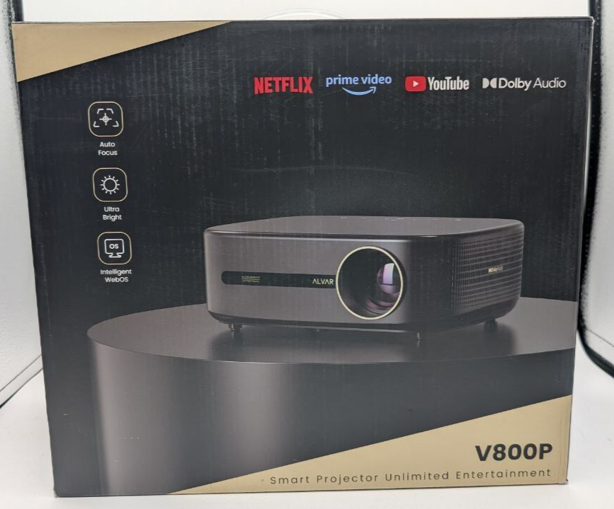 - Alvar V800P Wi-Fi Bluetooth projector is preloaded with officially licensed apps Netflix, Prime Video and YouTube, and over 7000+ other apps to download online.