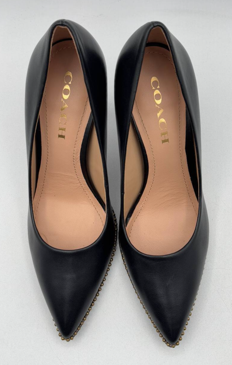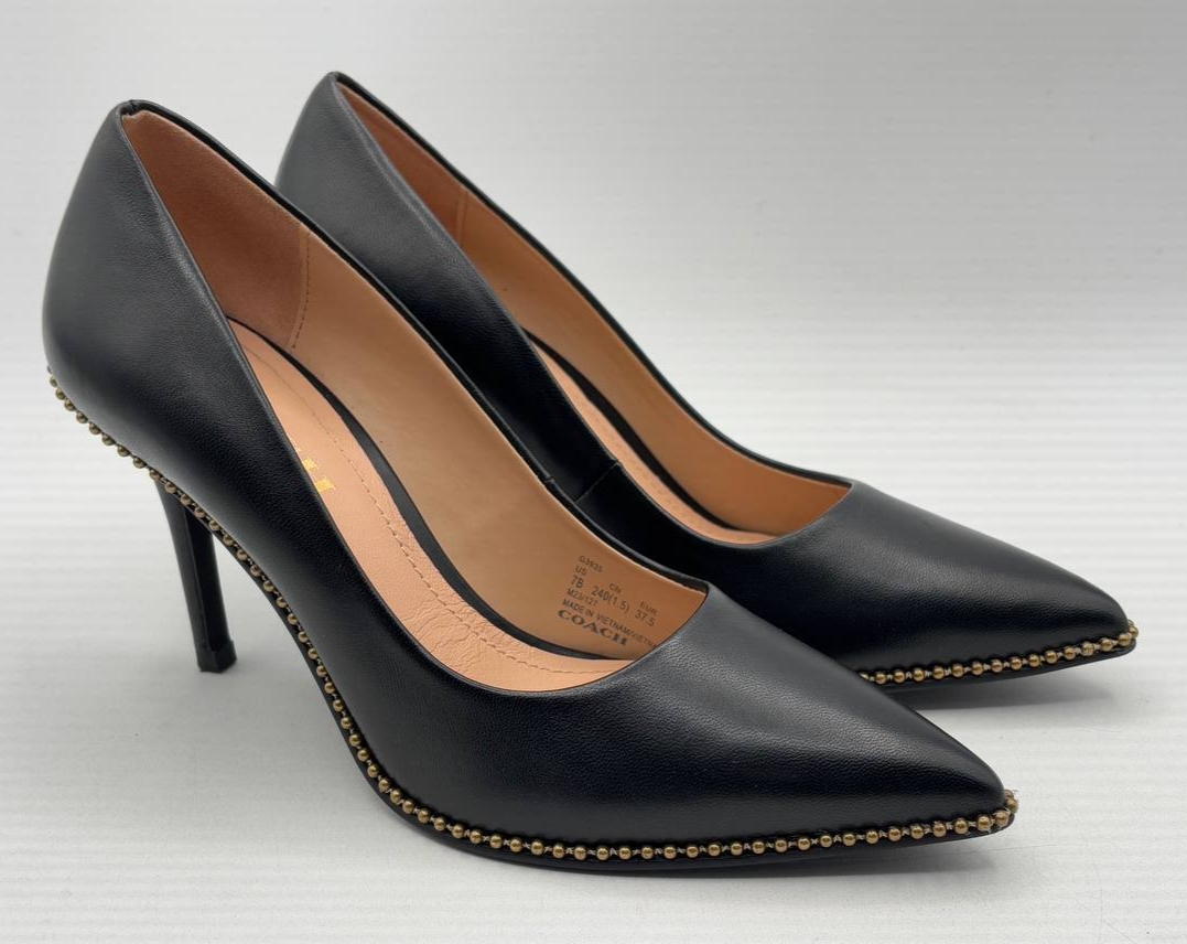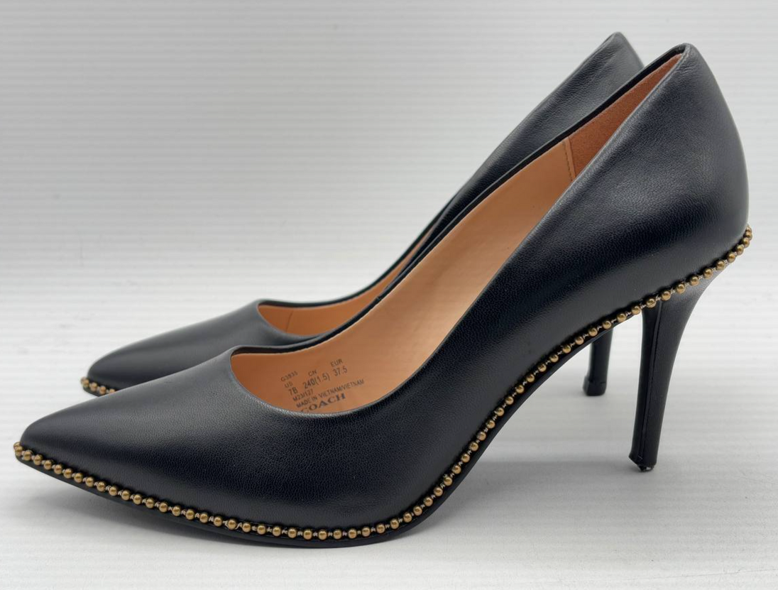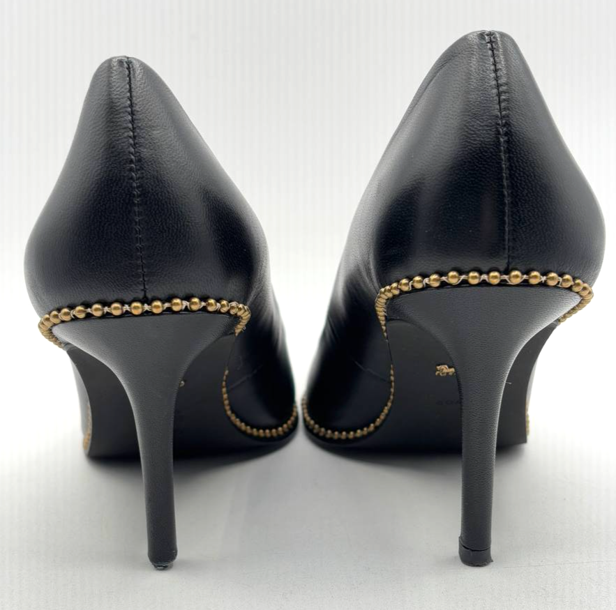 Coach Black Leather Waverly Bead Chain Pumps 3.5" Heel, Women's US 7 B (GR869)