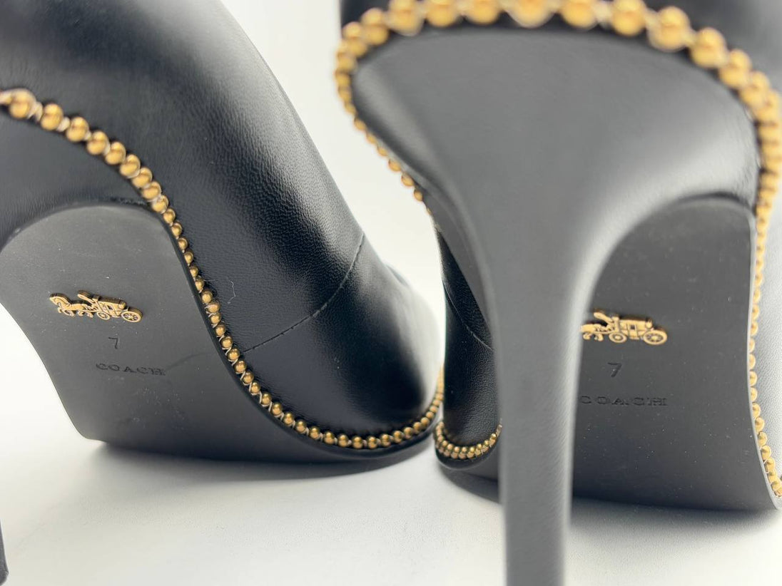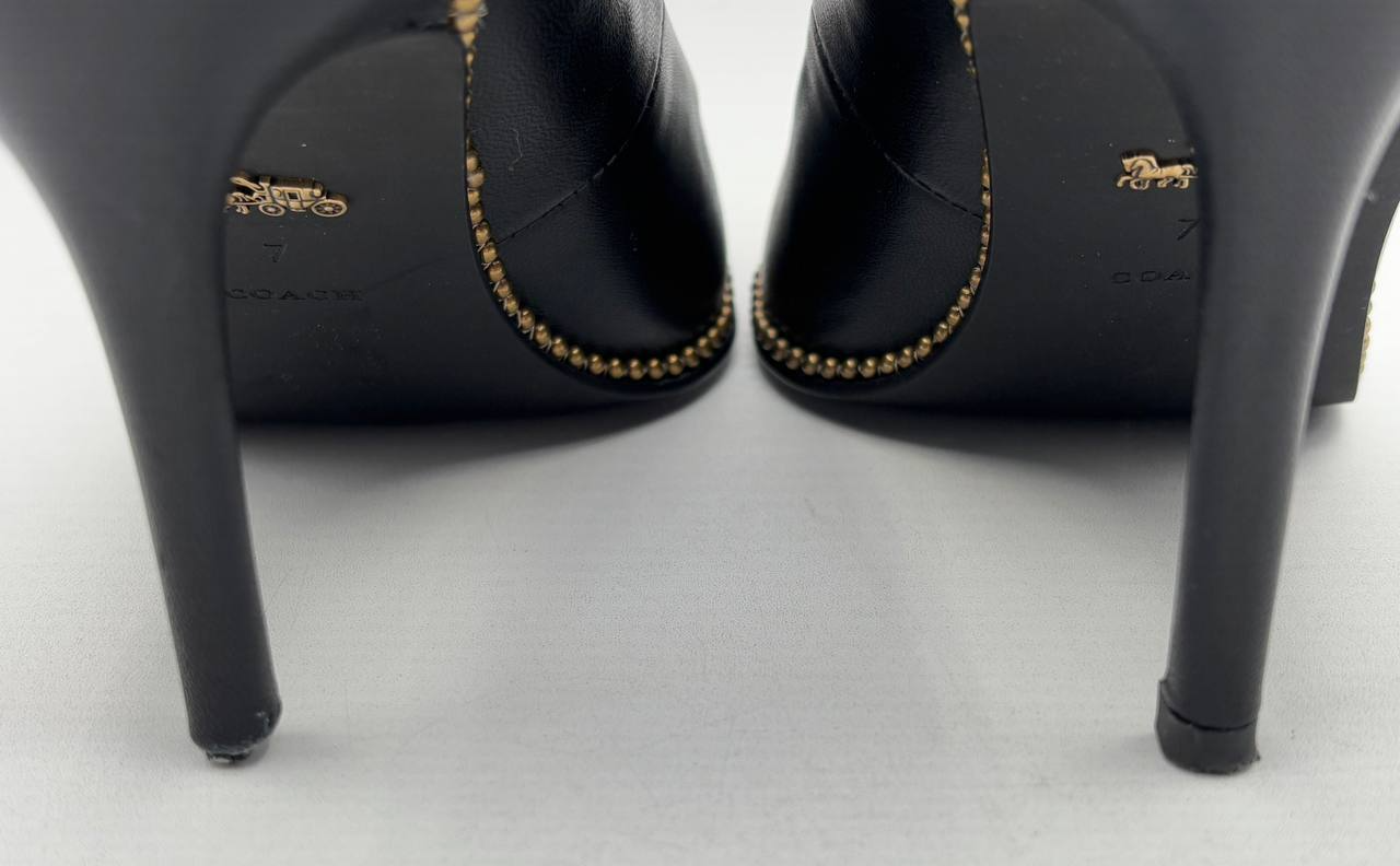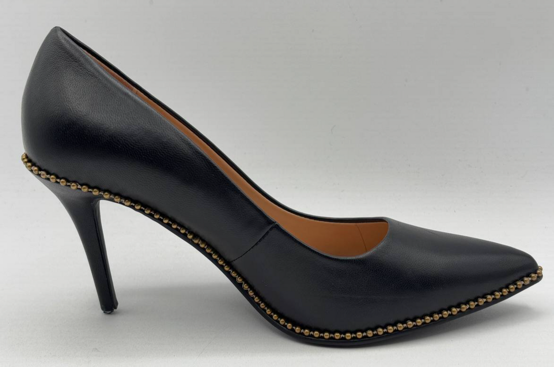 Coach Black Leather Waverly Bead Chain Pumps 3.5" Heel, Women's US 7 B (GR869)