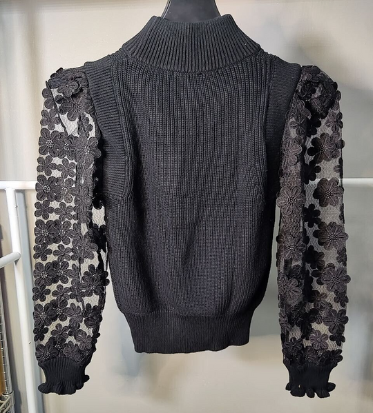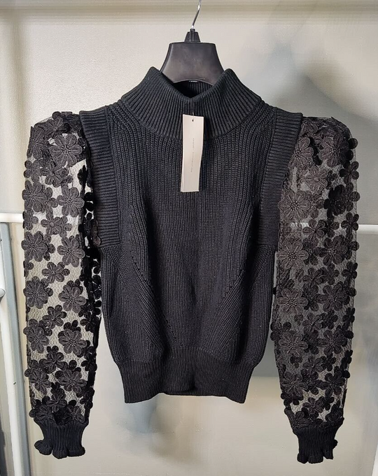 French Connection Women's Floral Lace Sleeves Sweater, XS