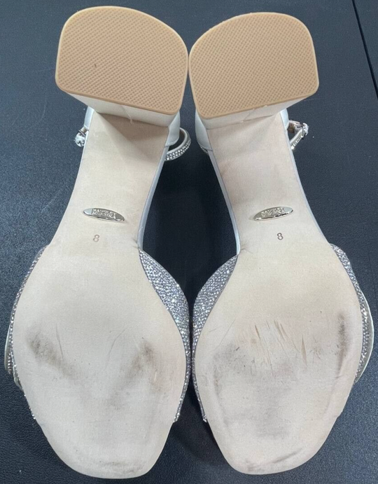 Toe Shape: Open ToeClosure: BuckleUS Shoe Size: 8EU Shoe Size: 38/39Color: SilverMPN: MP6808Heel Height: High (3-3.9 in)Brand: Badgley MischkaDepartment: WomenType: HeelHeel Style: BlockModel: Badgley Mischka PoppyStyle: Block HeelFeatures: Heel Height: 3.35"Upper Material: Silk Satin/Rhinestones Badgley Mischka...Regular price $90.00Quick view -