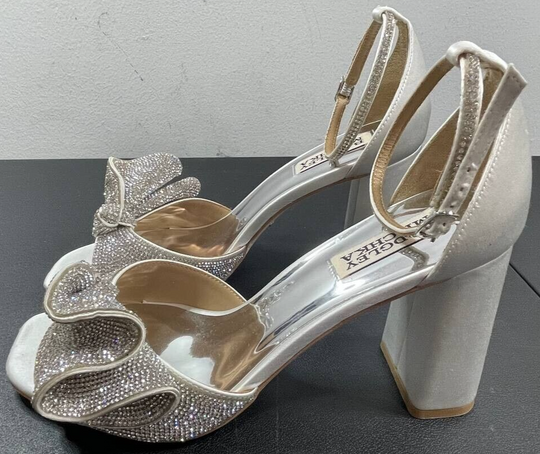 Pattern: SolidClosure: ZipUS Shoe Size: 8EU Shoe Size: 38/39Color: IvoryMPN: MP6509Heel Height: High (3-3.9 in)Brand: Badgley MischkaDepartment: WomenType: SandalHeel Style: StilettoModel: Badgley Mischka NayeliStyle: Ankle StrapOutsole Material: LeatherFeatures: Heel Height: 3.74” (95mm),RibbonUpper Material: Satin Badgley Mischka...Regular price $75.99Quick view -