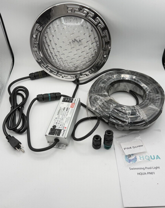 Brand: HQUALumens: 3000 lmType: In Ground LightModel: HQUA PN01DCMPN: 4010201 HQUA PN01DC 120V AC LED RGBW Color Change Inground Pool Light, 10" 35W 3000lm (RG646) Item is New in Open Box. Has been removed from original...Regular price $90.00Quick view  -