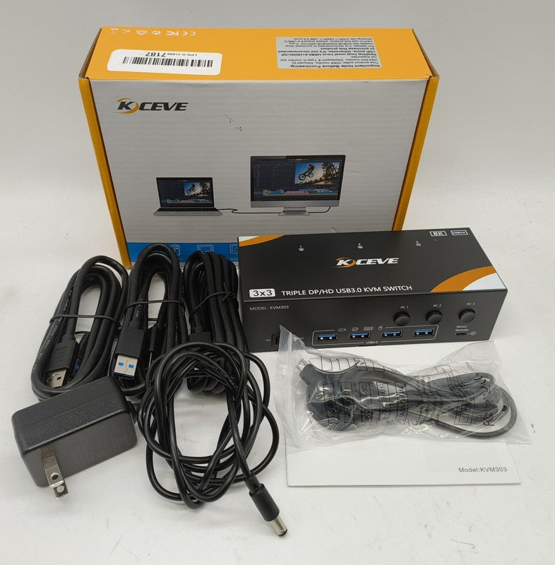 kceve KVM Switch 3 Monitors 3 PCs HDMI+DP 8K@60Hz Triple Display w/ USB 3.0 (MJ913)